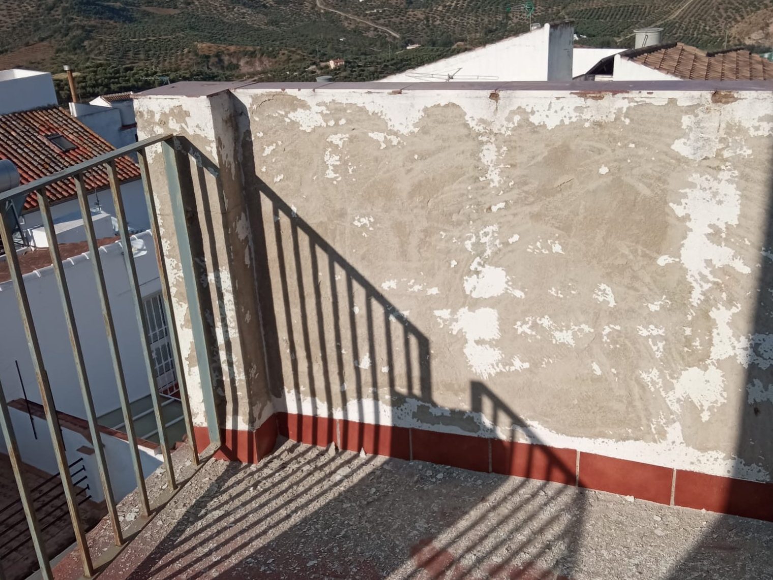 A little bit more history… This house had been empty and unused for several years. The photos we saw were taken when it was first put on the market. In these white towns, the render and paint used is chalky and not long lasting. It needs a freshen up every few years. So our roof needed a little bit of TLC to bring it back to life. Again, this was all handled by our agent.
