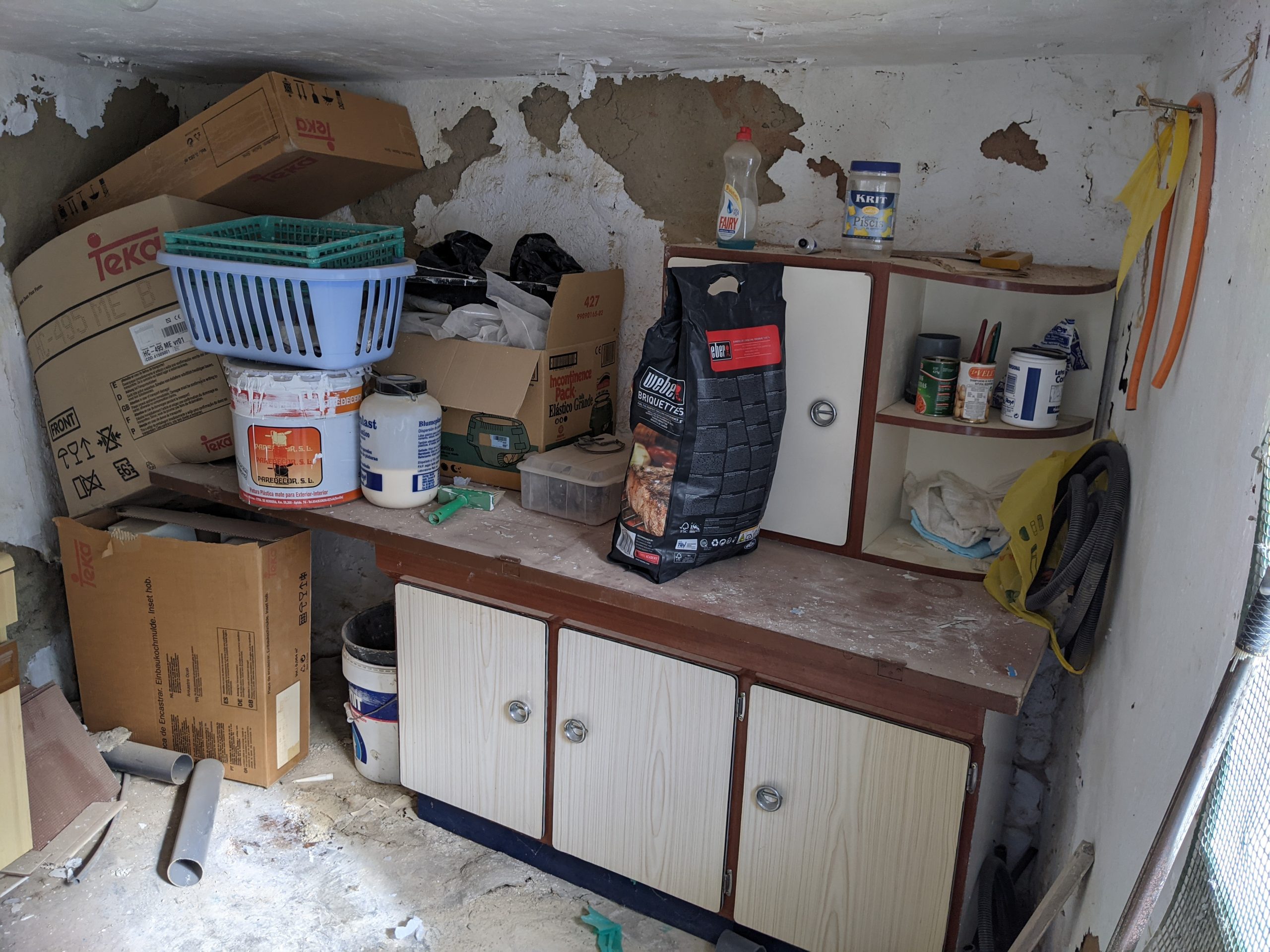 Antonio the builder went in and handled the lot. We were back in the UK by the time work started so just left him to crack on. He completely emptied it, leveled the floor as best he could, tiled it all and repaired the walls.